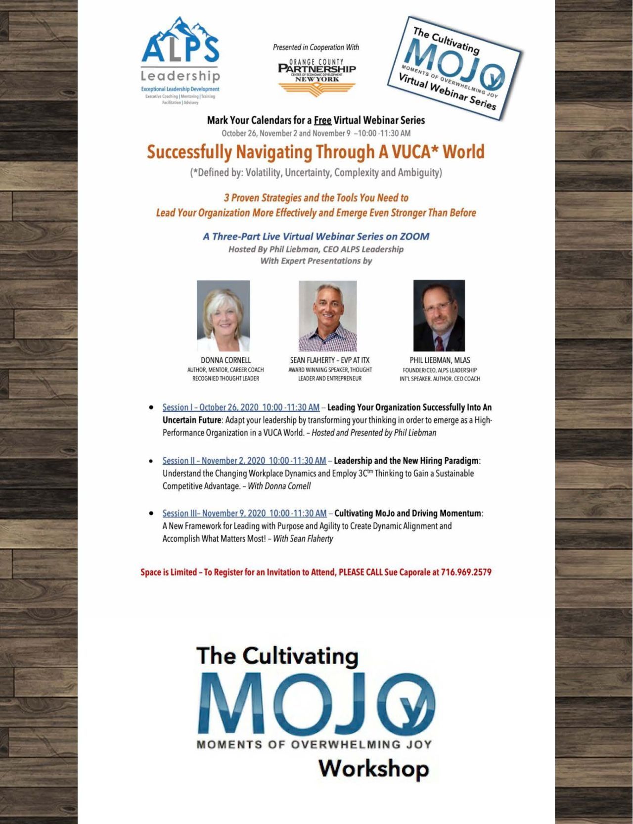 - Session III– November 9, 2020 10:00 -11:30 AM — Cultivating MoJo and Driving Momentum:A New Framework for Leading with Purpose and Agility to Create Dynamic Alignment and Accomplish What Matters Most! – With Sean Flaherty